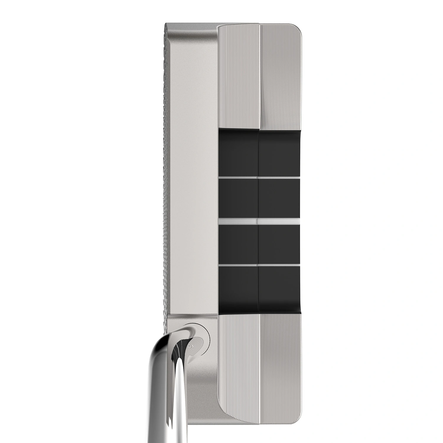 Most putter designs achieve their forgiveness gains by packing weight into the back of the head which adds to the M.O.I but pushes the Ch toward the rear at the same time. with a rear-biased CoG a slight mis-hit can cause a putt to travel offline or even end up short of the hole, even if the putt was a perfectly straight one. The Frontline Elite range of putters uses more than 30g of metal injection moulded tungsten across the striking area to move weight as far forward in the head as possible.This creates a much more forward CoG which helps the player hit straighter putts time after time.