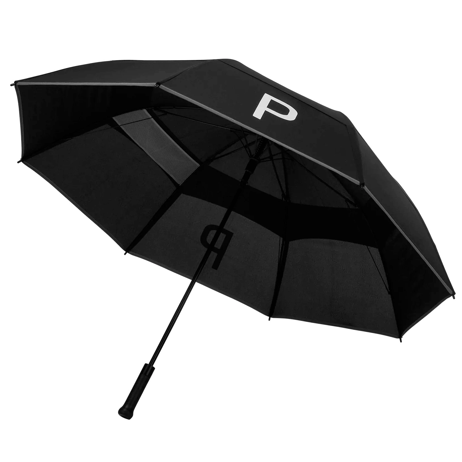Weather the storm with the Puma Golf double canopy Tour umbrella, keeping you protected as you play golf. The umbrella has a dual canopy to resist inverting in high wind situations and is highlighted with PUMA print branding for a touch of style. The umbrella has a lightweight and sturdy fiberglass frame, plus has a foam padded grip handle with auto opening functionality for comfort and convenience during your round of golf.