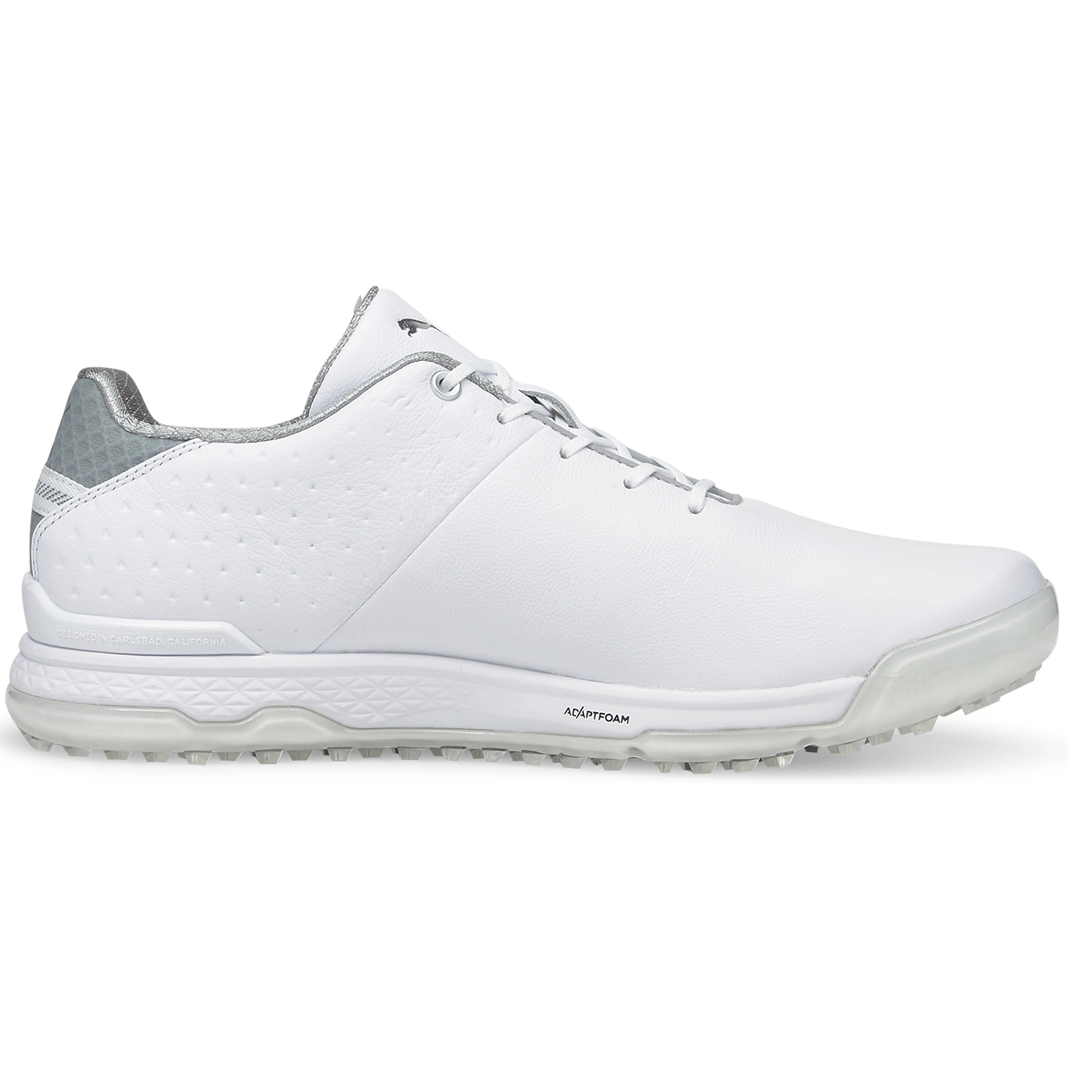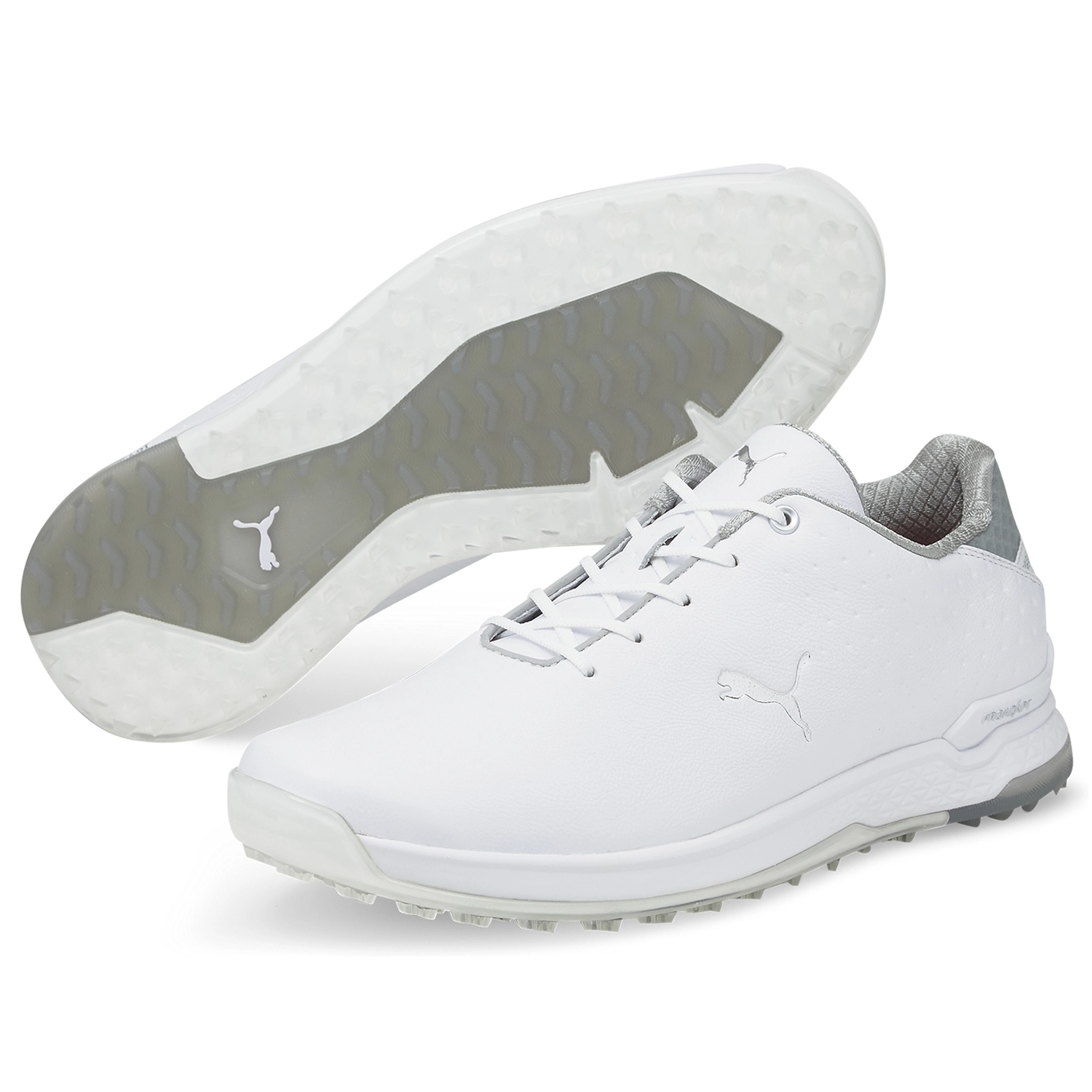 The PROADAPT ALPHACAT is the “King of Comfort” and it boasts an impressive array of innovative materials including PUMA GOLF’s proprietary ADAPT Foam, which is made from a combination of EVA Cushioning and an impact resistant polymer. The combination of the materials creates a platform that provides impact resistance, energy return, and ground feel. While the PROADAPT Multi Material Outsole, which features a high-durometer, abrasion resistant TPU perimeter that provides great stability and traction on soft surfaces while the central Crystal Rubber unit, provides exceptional ground gripping traction and a soft under foot feel on hard surfaces, giving you the confidence to hit any shot no matter the lie. The upper is an EXO Shell comprised of engendered mesh with a TPU Film that provides both structure and support as well as waterproof performance. This shoe comes complete with a 1-year guarantee.