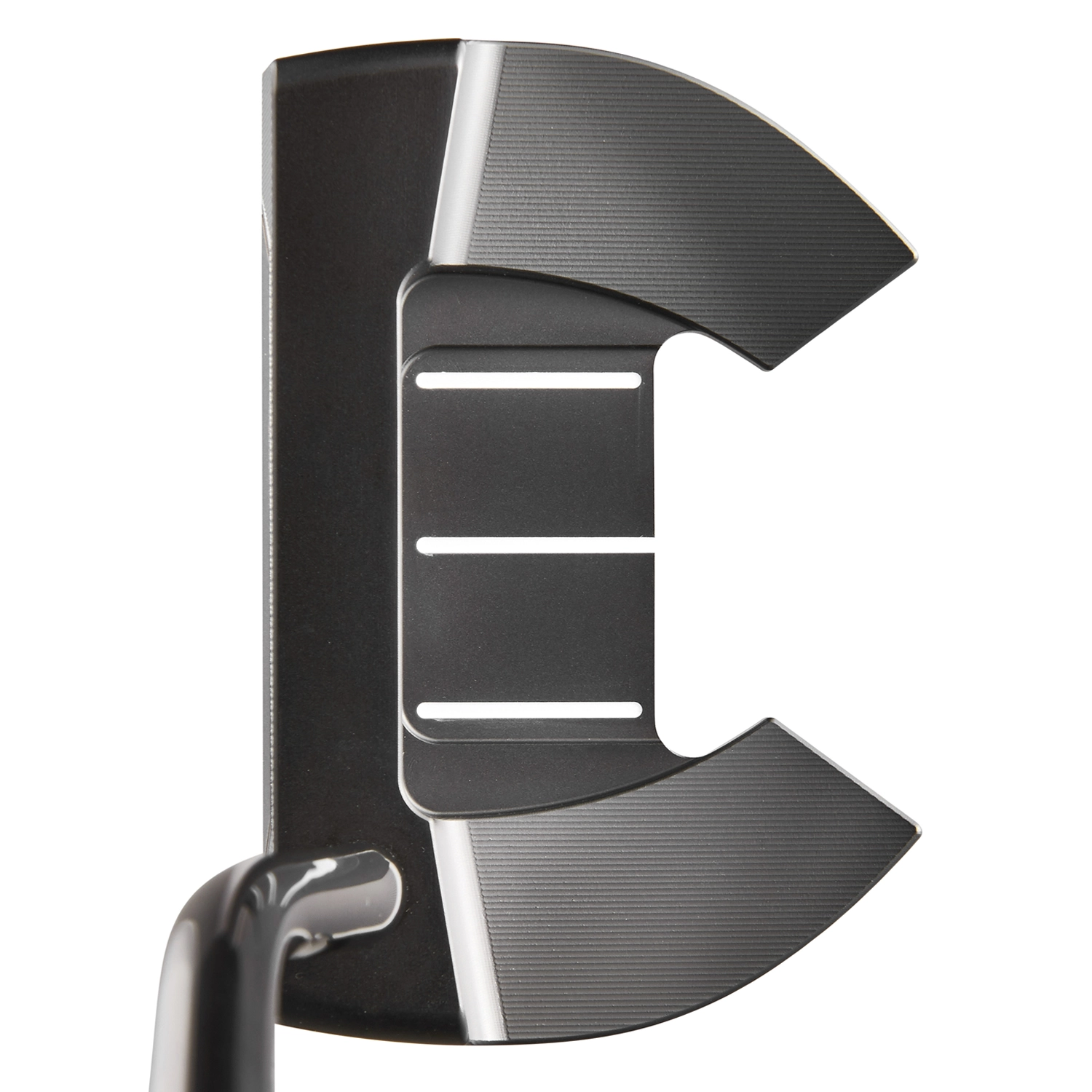 Three sight lines help in the alignment of the putter whether playing the heel or centre shaft option.